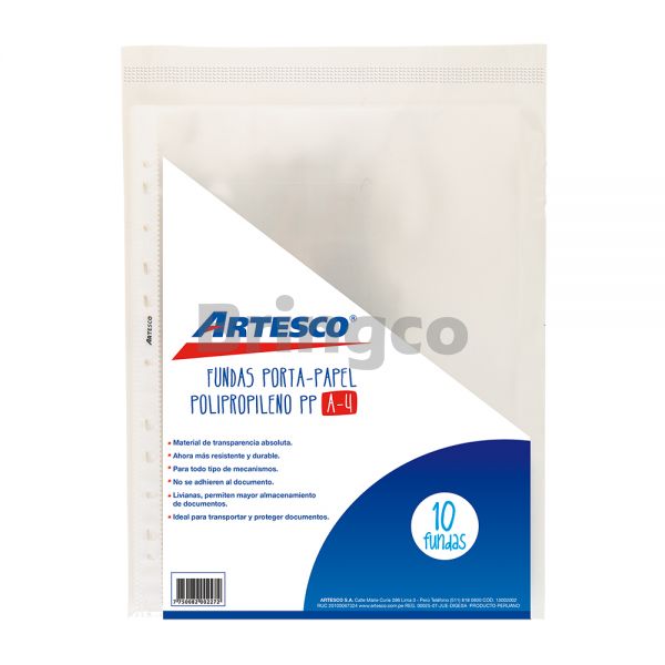 Funda Protectora Artesco Transparente A4 paq x 10 und (Br)