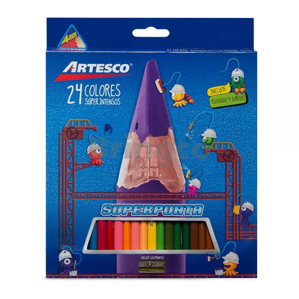 Lapiz de Color Artesco Triangular Largo Paq x 24 Colores (Br)