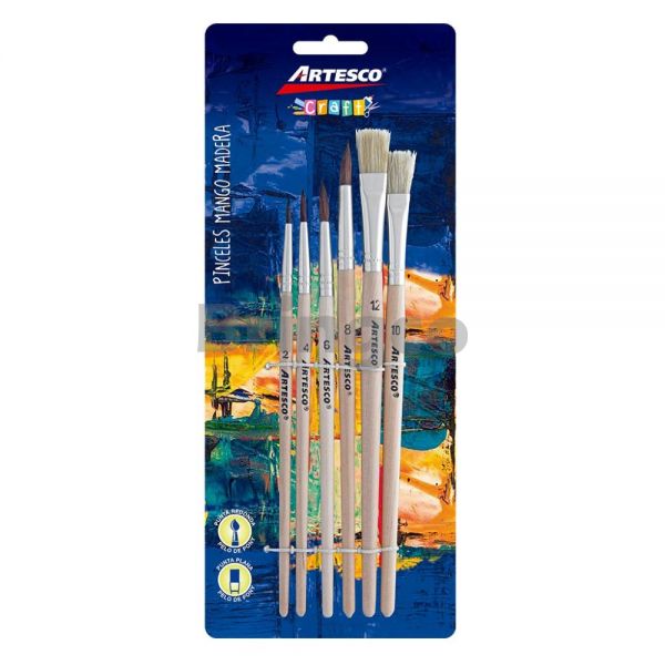 Pincel Nylon Artesco Mango Madera Paq x 6 und (Br)